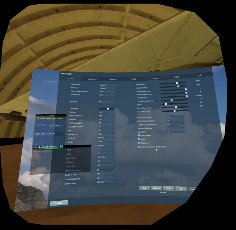 When entering instant action cold and dark start, the frame rate within the cockpit fluctuate between 10-15 fps. By reducing textures from high to medium, increased to 35-40 fps. It’s a temporary solution but hopefully it’s resolved soon. I7 13700kf cpu, Z790 Aorus Elite, RTX3080, 64GB 5600 DDR, DCS runs on a dedicated 2TB Samsung Pro SSD.