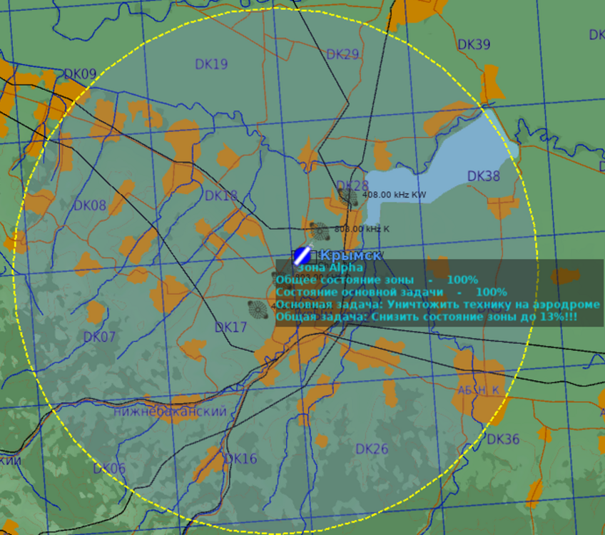 Приглашаю всех на сервер =RND= Данные: Имя сервера в лобби: =RND=server Кол-во игроков: 16 Карта: Кавказ Одна сторона (красная). Время миссии с 8.00 игрового времени + 12 часов, потом рестарт. Если все зоны будут отыграны, то миссия перезагрузится. Маркеры наземки отключены, полет камеры по F11 тоже. Динамические слоты, горячий старт. Самолеты: все, которые есть у игрока, за исключением второй мировой. ==== Основное описание ==== Задачи миссии. Есть несколько зон (Alpha, Bravo и т.д.), которые необходимо зачистить, путем уничтожения определённого числа юнитов в них, или выполнения основной задачи в этой зоне. Кол-во юнитов и их место расположения в зонах при каждой генерации зон полный рандом, соответственно и возможности обороны. Но зевать точно не стоит. Зоны разные по уровням сложности задач. Вся информация о текущем состоянии зон отображается на маркерах в карте. Зоны боев на карте выглядят так: Вариант 1 В этом типе зон ее можно закрыть двумя способами: Просто выбить всех юнитов в зоне (Общее состояние зоны) и когда их кол-во упадет до указанных 13% зона перейдет в состояние Зачищено (все целые юниты удаляются с карты!!!). Второй вариант выполнить основную задачу, на скрине это: Уничтожить технику на аэродроме, получилось выбить ее до нуля (Состояние основной задачи) зона досрочно закрывается. (все целые юниты удаляются с карты!!!). Вариант 2 Тут все просто основной задачи нет. Просто выбить всех юнитов в зоне (Общее состояние зоны) и когда их кол-во упадет до указанных 7% зона перейдет в состояние Зачищено. (все целые юниты удаляются с карты!!!). Зону, которую зачистили выглядит так Может кому и зайдет такой формат. Удачи в вылете! P.S. Пока все в режиме отладки, миссия может упасть, просьба понять и простить, дело для меня новое, как поведет все себя (железо, канал, миссия) при народе больше двух, без народа я не протестирую в любом случае)) Новые зоны с задачами в процессе добавления. Проблемы, баги, предложения пишите сюда. Удачных полетов!
