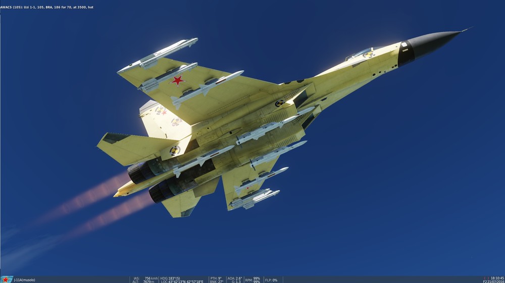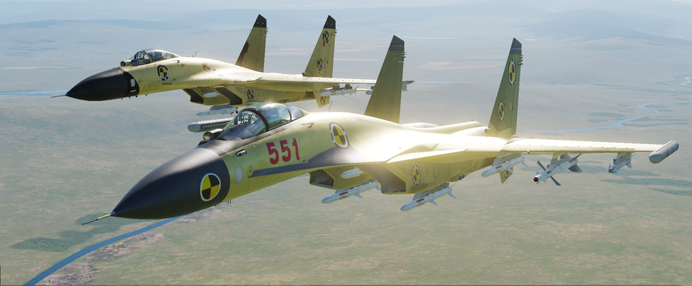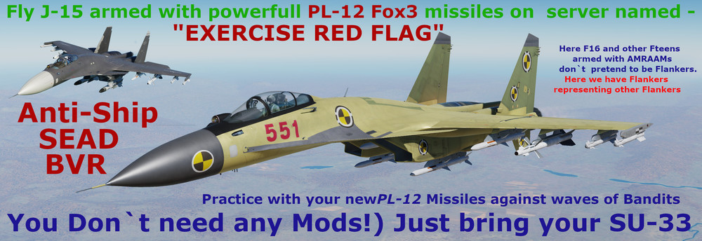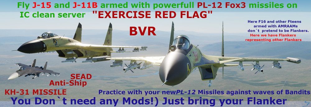 Red Flag baby) The only IC clean place you`ll practice J-11B and J-15 automaticly armed with PL-12 against F15,F16, F18 armed with 120B and vice versa. Oddly enough those two missiles have virtually the same range. PL-12 being just a hair shorter distance. There are 4 slots outside of main battle zone that will let you compare those two missiles. They added to Flanker to see their ranges on it`s HUD. And shoot them at immortal AI . There are still some differences in how those two missiles behave. But you won`t find closer match amongst Fox3s. That said KD ratios are still not in favour of Reds though. Due to outdated radars and archaic avionics and instruments. But difference is not that huge as it was before. Redfor lethality compared to Fox1 era loadouts is skyrocketed. So difference in combat effectiveness for Reds is night and day really. and what`s most important for those bored aces - the trill of Blue vs Red air combat is back! Red Flag scenario can be anything really. But F16s and F15s armed with 120C playing for REDFOR pretending to be anything out there. If that is ok with you than having older Flankers represent their laest versions shouldn`t be any problem i guess. If that`s the case with you - you are welcomed to enjoy them together with us while we can) If you`re open minded and want to have fun in jousting competitions there is a place for you where all knights fight with same kind of lances. Check out the Su-33 J15-ish dark cockpit skin in user files. With datalink not bleachig out under the sun anymore. Cheers!