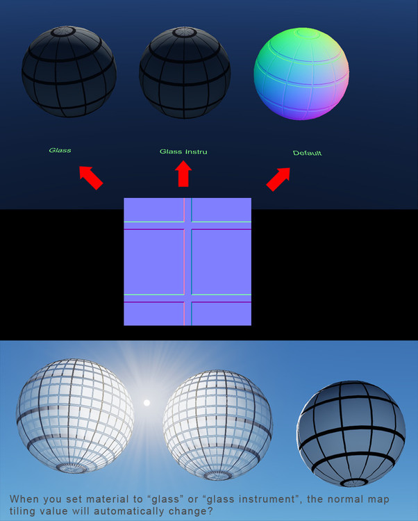 Anyone notice that when you set material type to "glass" or "glass instrument", the normal map tiling value will automatically change? Guess it's related to canopy glass rain drop or scratch glare calculation. Any solution to this?