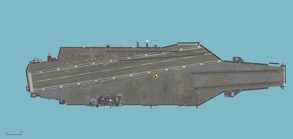 What is this line? (circled in pic) I understand what the other lines flanking the runway and cats are, just not this one. Ultimate goal is to have aircraft realistically parked on the deck in missions so any input on this topic in general would be a big help!