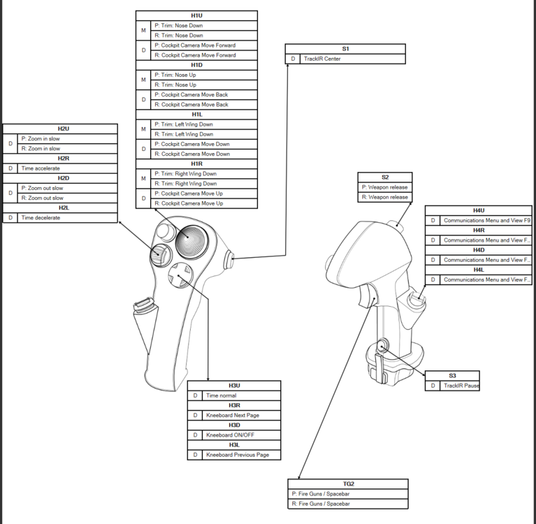 I got you Bit, when you run the script it will create a new device called Thrustmaster Combined and you will still need to assign stick and throttle axis in the DCS spreadsheet. The P-51 is one of the more basic layouts, the cockpit is very intuitive to use with a mouse for start up especially in VR. In the diagram attached the [D] represents the down layer for use in conjunction with the paddle switch as modifier. As you can see I have all the basic functions that are part of my standard template. Kneeboard, zoom, TIR center and reset, etc. I have all the function keys F1-F12 mapped to the hat switches for views and the comms menu as well. They follow a clockwise convention left to right for the 3 hats, with the trim hat switch moving your cockpit head position with the paddle pressed. Otherwise it's just a normal trim switch. It sounds like a lot but it's very intuitive with a little practice. I keep those consistent regardless of module. You can move your head around, change views, check kneeboard, reset TIR, all with HOTAS. Note: I changed the default TrackIR keys for recenter and pause IIRC. But that's easy to do, so if that doesn't work you'll need to adjust yours accordingly. Sometimes I have to add custom keyboard combos in the DCS spreadsheet to prevent conflicts but I don't think I had to do any for the P-51. The F-16, that was a struggle with the Cougar/TUSBA and the Warthog stick together. I actually tried to use Rudel's template for Foxy but couldn't get my Cougar throttle to be recognized without the TUSBA. You might get an error if you don't have the MFDs but you can adjust the profile to exclude those with a few mouse clicks. To use an imported script for the first time you have to press edit configuration in the TARGET GUI and then use the file explorer to pull it up. Then go through the pages and press save and finish then it should save to the default path on your machine. DCS P-51D.zip -