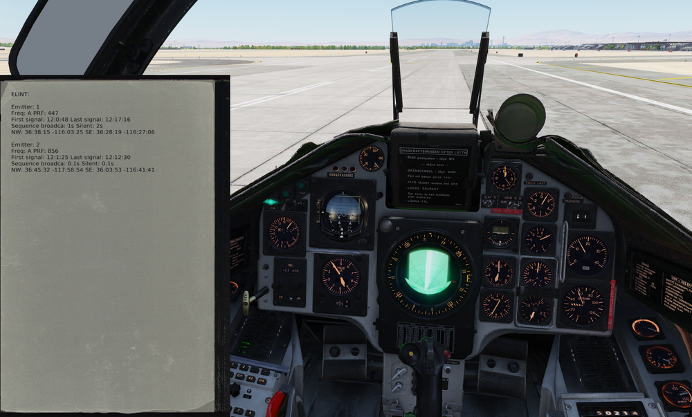 Per il momento ho provato con il POD u22/a, mettendolo in ascolto, quindi modalita' "A" e "K", il modulo riceve il primo segnale e l'ultimo segnale della postazione SAM. Una volta fatto un cerchio o meglio un quadrato intorno al segnale, si atterra e si scaricano i dati, imposti la manopola del radar su "BER", apri la mappa cosciale e vedi le coordinate della Latitudine e Longitudine di ingresso e di uscita (vedi allegato) e sulla mappa cosciale vedi il punto dove si trova la postazione SAM, il problema che e' buggata la mappa, cmq poi dovresti usare le coordinate (in modalita' f-10) e triangola la posizione per gli altri piloti. Ho gia' la tabella, utilissima!! da quella infatti codifichi i dati, in questo caso, sono stato spottato da: 447 - Search & 856 - Tracking :thumbup:
