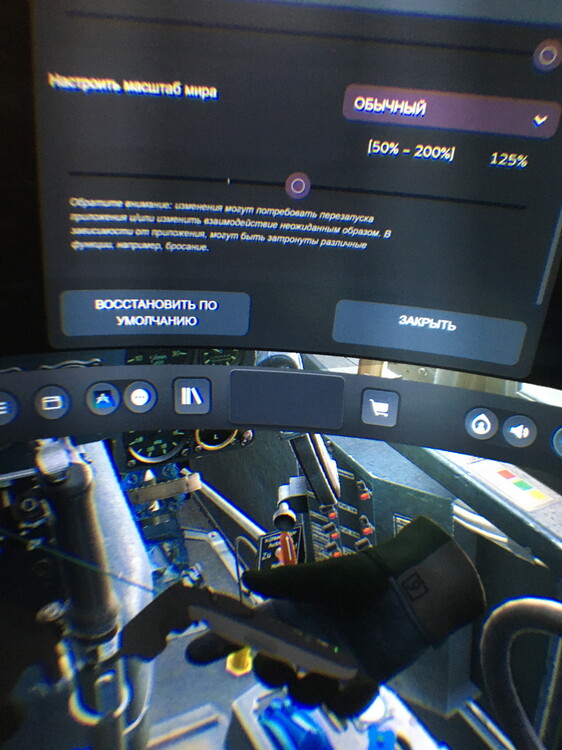 И снова отвечаю здесь сам же себе =)), так как возможно кому-то это пригодится, если кто-то столкнется с такой же проблемой. Оказывается в SteamVR есть такая настройка (см. скрины), где можно поменять масштаб мира. Поэтому я выключил "Принудительное межзрачковое расстояние" в настройках DCS, и поменял масштаб мира в SteamVR. В итоге ощущение объектов и виртуального пространства настроил, и контроллеры с вирт. руками остались совмещенными. Проблема решена. Единственное, все таки осталась просьба к разработчикам. Дело в том, что под каждый самолет надо подбирать отдельный масштаб. Например, на Fw 190 A-8 как бы я не подбирал, но виртуальные руки не дотягиваются до нужных переключателей. Чтобы РУД дать до упора надо перемещать все тело вперед, иначе не дотянешься, или же делать маленький масштаб мира, но тогда кокпит и сам самолет видится миниатюрным и игрушечным. Можно ли сделать как было раньше, когда виртуальные руки были как бы продолжением контроллеров "как на палках"? Лишь в таком случае возможно было дотянуться, не перемещаясь всем телом вперед. Ну или может сделать какую-то настройку, чтобы можно было немного регулировать длину виртуальных рук?