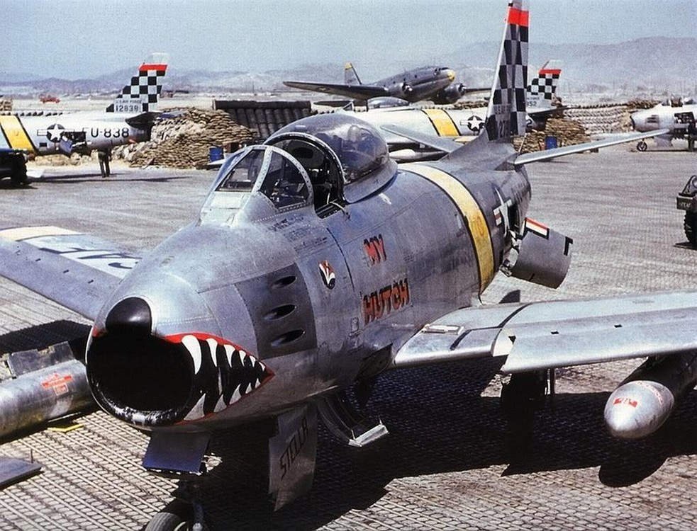 Yes, I'm in for authentic all the way. I hear that. Robert very interesting about the wax. Didn't know they did that. I wonder if it actually worked, or if it worked against the pilots by adding additional skin friction drag from a dissimilar material and disturbed the laminar flow? Interesting indeed! I'll have to follow up with some reading of my own as well. Thanks for sharing this. Here's a few of the better examples of just how reflective the Sabres could be...there's also many images that show the exact opposite, I know. If you look at Image 1 & 2 below you can see in the fuselage that the cloud layer is clearly reflected with some good detail. (You can also see the white paint on the wing that I've opted to reference in some of my paints). I imagine that many photos (color or BW) depends on the camera settings how well they capture the image even TOD can play a factor or environment conditions (overcast sky vs severe clear) for how well the image captures the reflections. You can imagine that up close that would be a fairly good resolution of the surroundings. This obviously isn't the case with say photo no. 3 below. where it appears that the Aluminum has been oxidizing a while without treatment. However, the interesting thing about this photo is that the wing is very reflective, reflecting perfectly the unit strips on the fuselage and tail, and the equipment. So, it almost begs the questions, if you look at the environment, it's very hazy/cloudy, and looks like a lower sun angle, could be that there's simply not anything of detail to reflect in the fuselage...(I think it's likely it's not very reflective) but if you look at the top of the fuselage you can see the dark blue/grey of the sky or clouds above...so it's still getting some, enough for capturing color of the material. Image No. 4 though, is a very sneaky one. On first inspection doesn't look all that reflective, but if you look at the aft fuselage, you'll notice that it is actually reflecting the the tarmac and shoveled snow bank from across the way in very good detail. Sky conditions don't look like they provide much contrast so there's not much color tone change in the fuselage.