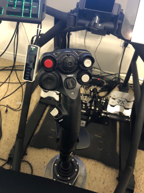 I basically just kept stalking their website until the stock came back in. It didn't last long and as soon as I got work I jumped on it. I recommend that you join their newsletter. I normally don't like getting random emails from companies and generally don't subscribe, but while I was waiting initially I missed an earlier opportunity. So I joined their newsletter and it announced that stock was back. I went to their website and ordered immediately. Same thing with Virpil (which I will be doing another review on once I get back to the states in January). Trust me...worth the wait!! I enjoy flying DCS with the Hornet with this stick much more than the Warthog stick! I am sure once the Hornet stick from TM is released (if it ever gets released!) I will have a hard time choosing, but for now there is no comparison IMO. As for the setup I just have this one pic. I recently moved and didn't save the pictures I had before. I have the Obutto Revolution and welded a custom plate to one of their brackets to get the height that I wanted.