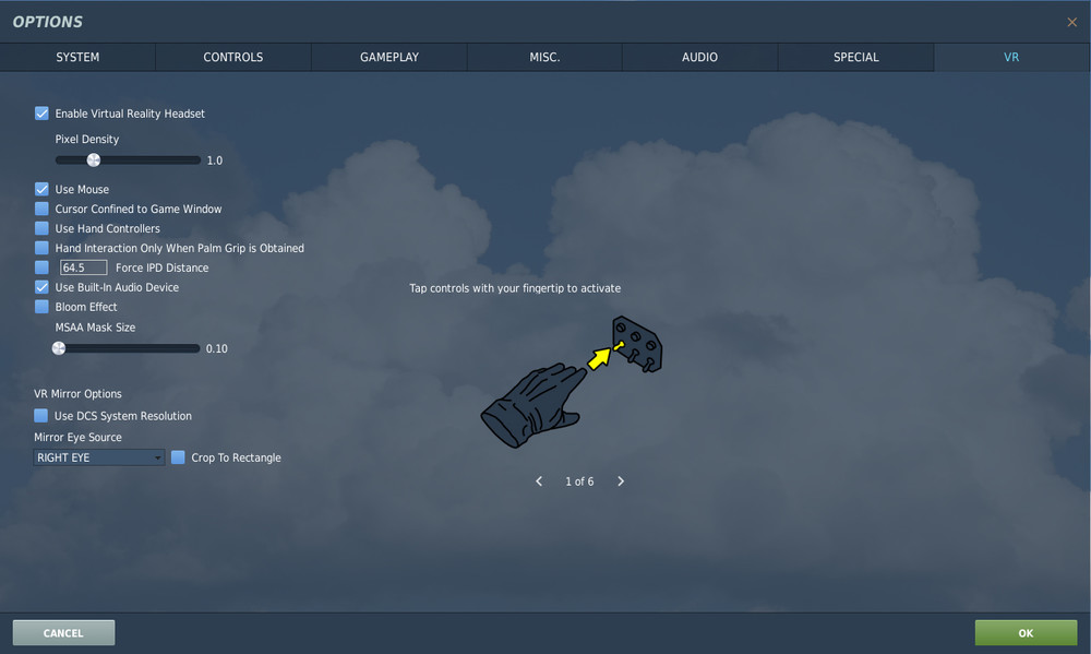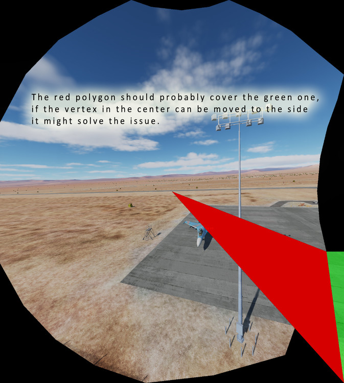Thanks for your efforts guys, I have deleted both FXO and metashaders2, to no avail, the gpu driver is constantly being updated as well as SteamVR, the problem only occurs when I start a mission, i.e. as soon as the "FLY" button appears, before that and after the flight there is nothing wrong, by the way my mask is still black, even if I play with its size or remove it completely, the black triangle persists ... don't know what to do anymore