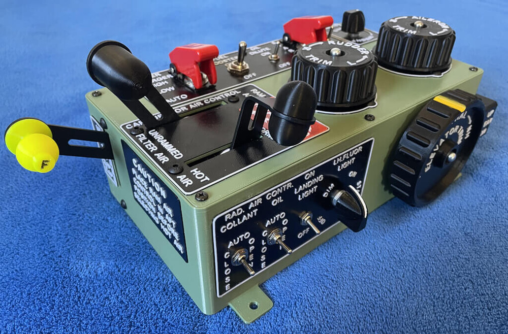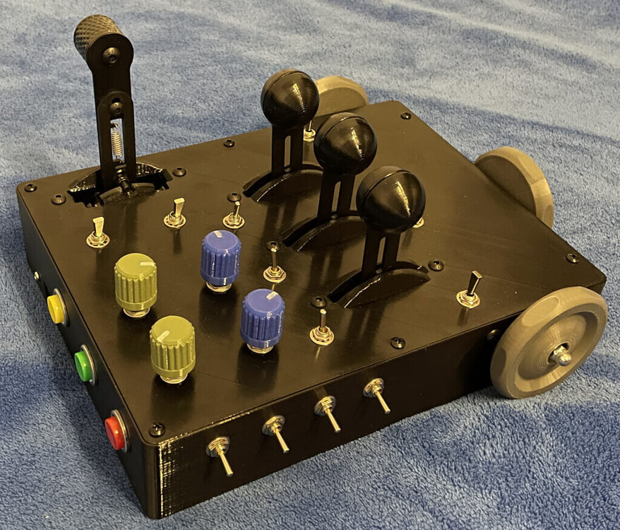 Всем, привет. Хочу показать что у меня получилось. Но переднюю панель на РУД хочу переделать в стиле Мустанг. И добавить отдельную механику для Шасси. Кстати, перейдя на блоки питания по 24в, а в механике Джойстика уменьшив высоту до 215мм и увеличив размер больших шестерней до 68 зубов, я получил на джойстике с высотой рукоятки в 40см - 17кг!!! А на моих старых педалях получил - 40кг!!!