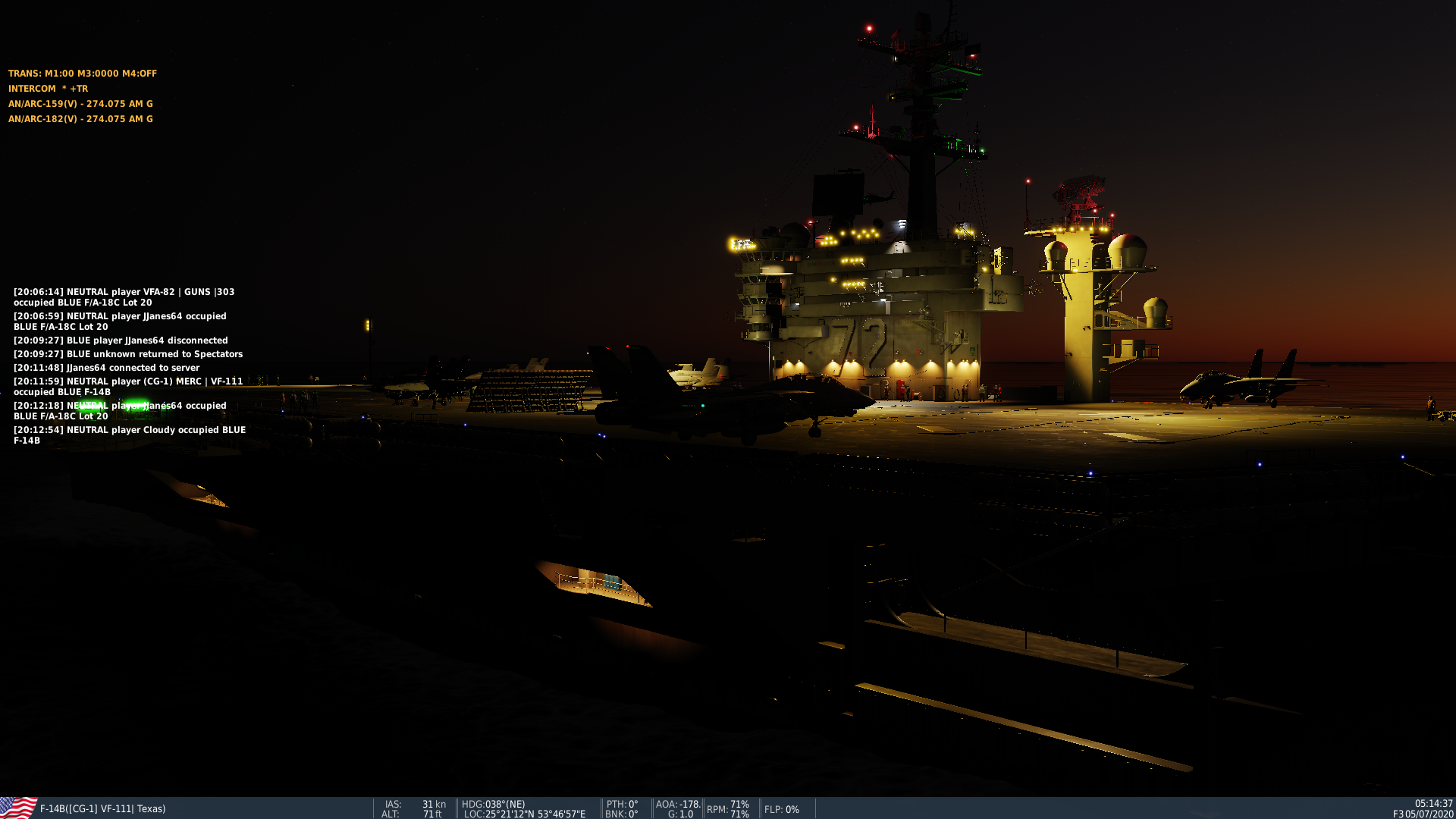 10. VF-111 currently operates the F-14B Tomcat as a member squadron of Carrier Group 1 (CG-1). Our mission sets are air superiority, fleet defense, and strike. We train for complex large scale operations and emphasize the execution of realistic procedures and tactics where possible (and practicable). We utilize SRS for two-way communications during flight. Official flight times are Sundays at 2030 Eastern Time with unofficial flights and training events spread throughout the week. Correspondence and planning during off hours is typically conducted via Discord. The on-boarding process consists of a probationary period where applicants will be given time to familiarize themselves with the squadron and the nature of our operations. Applicants are introduced to our training program which will allow them to build confidence in their aircraft, and gain proficiency in our procedures. Once an applicant has become sufficiently acclimated to the environment and all parties involved have determined an applicant is a good fit, full membership will be granted. Ages 18 plus preferred- good attitude and team mindset required... https://discord.gg/tNQW9y9