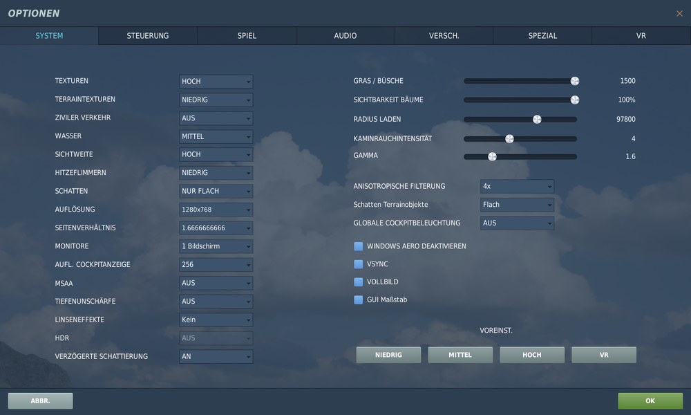 Ok download marathon is finished and yeah its runs smooth as never before. Even i didnt optimized my settings it runs stable. Ok sometimes only little drop to 42FPS but rest runs a stable straight line of 45FPS according to Tray Tool. Didnt even set Nvidia to high performance though. But definetely an improvement !!! For everybody who has problems like i had this could be a solution or only to make a new partition and install there only DCS and the Oculus driver. Below u can see my settings from my last Test run. Also i noticed that the loading times are quicker .