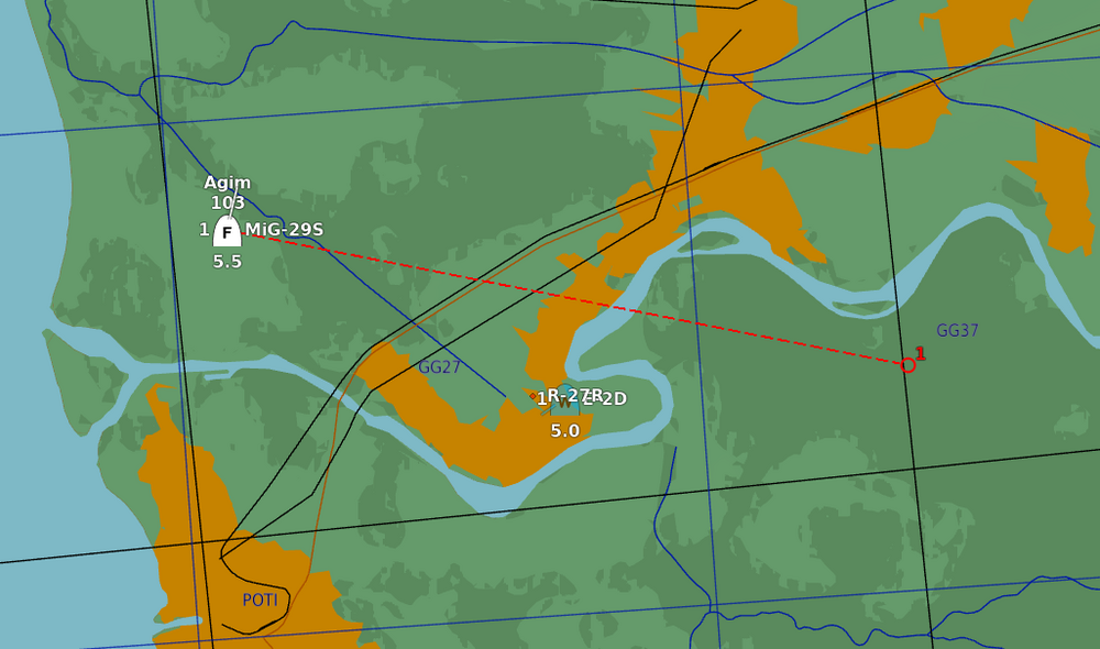 I lunched it in nose to nose possition, than started to turn. Track file is attached. I also attached screenshot of F10 map just before impact. The problem is not missile obviously, but radar of Migs and Suchois. Their radar keeps lock in too wide range of angles. r27.trk