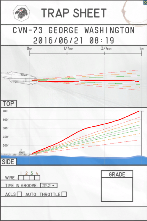 On some (I admit rather unsafe) of my landings on the Supercarrier module, the trapped wire is not shown on my trap sheets and the field remains blank (same with the score).