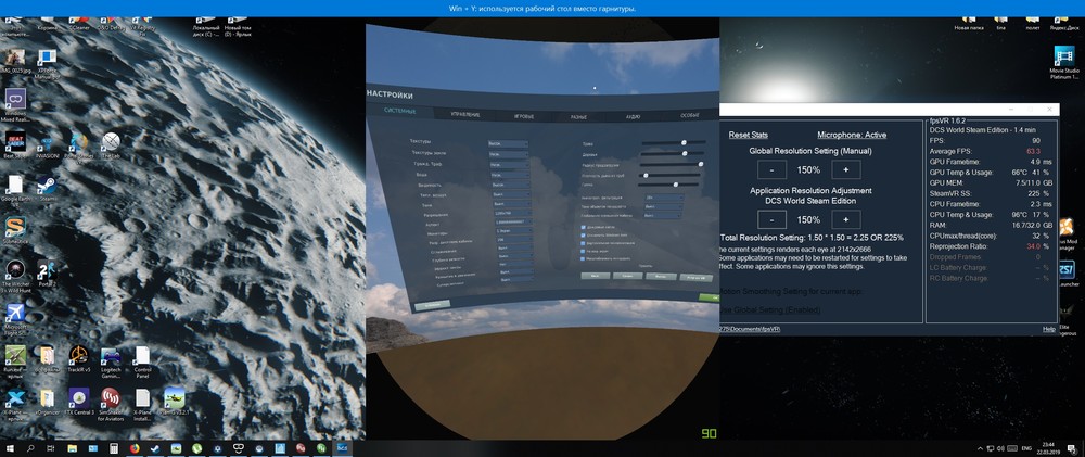 Да, я путем эксперимента пришел к наиболее приемлемой производительности именно с настройками, что я описал выше. Ранее ставил в симуляторе коэффициент 2, а в стим вр 100+100 (или 100+150 итд). Картинка была таже, что и сейчас, но фпс ниже. С помощью программы fps vr еще удобнее (не надо заходить в настройки steam vr), но именно в dcs "налету" настройки все- таки не меняются (надо перезагружать симулятор). REDFOX, подскажите, XMR для оперативной памяти, что Вы писали , включается в BIOSе ?