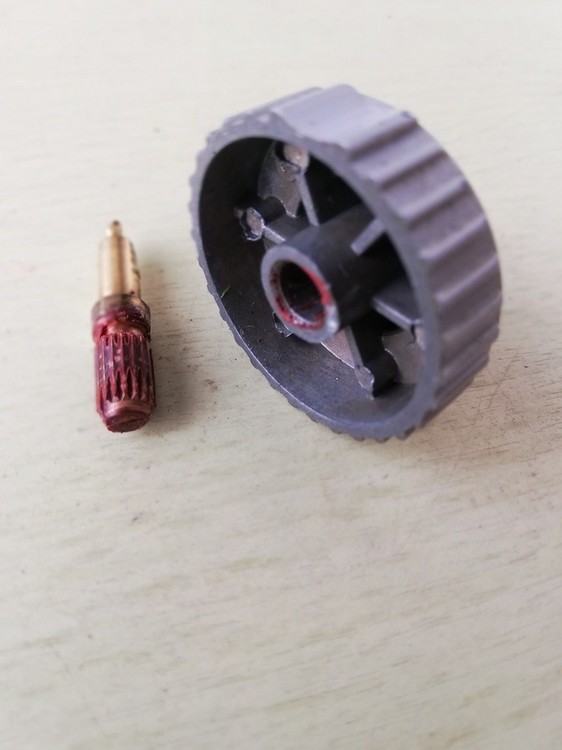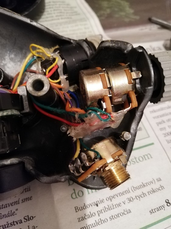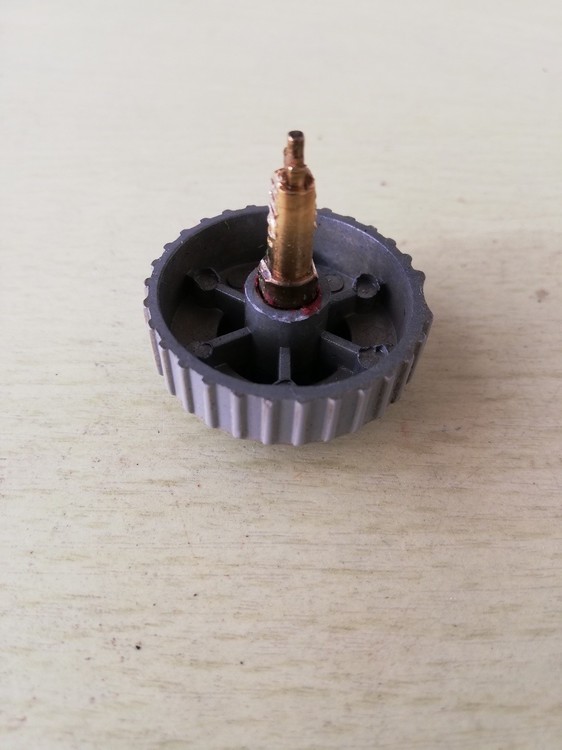 This is a story how I damaged (a little) my TM throttle with good intention. My TM Cougar is an old veteran, purchased sometime in 2004. In 2005 it got a Hall sensors upgrade by Ernest "Cubpilot" Smith. Year after year the ANT pot lost it's center detent so I wanted to refresh it with procedure described also by Cubpilot How to fix an antenna pot The problem occured when I tried to pull out ANT knob. It didn't go by hand nor by flat screwdriver. After use of some excessive force I finished with the axis torn out from the potentiometer (pic 1). I dismantled the whole handle, disconnected the rest of pot (pic 2) and tried to get out the axis from the knob as I was convinced to save the knob at least. I was forced to use really brute force, put the axis into a vice and pulled the knob from axis with a crowbar. Fortunately it worked and I saved the knob with minor damage (pic 3). I realized how I destroyed the pot, the axis is pressed into the tiny plastic disk with two wipers to make a contact and central detent on opposing plate with resistor and central ring (pic 4). Now I also know, why I wasn't able to pull out the knob from the axis without force. It was glued with red warnish during assembly. The red lacquer is probably the same, what is used in both casings to seal various nuts. So bear in mind this opportunity, maybe you will need a new spare pot and maybe the knob when you will intend or be forced to disassembly the throttle. Now I am looking for another pot, I contacted TM support and local dealer too, I will inform a community how I succeeded...