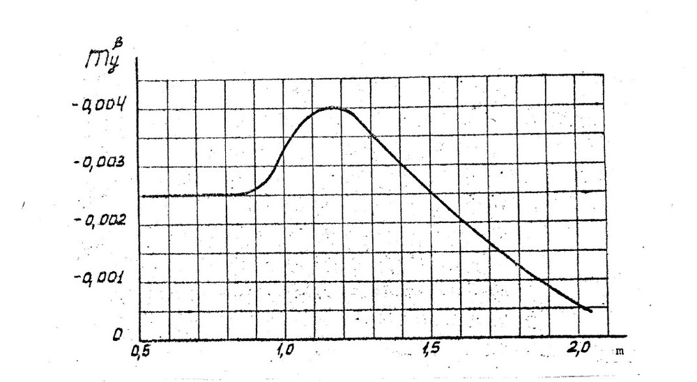Hi Jonne, It is in the russian Mig-21Bis manual. The manual does not go into detail about what happens if you overspeed or exceed limitations, and it is not supposed to anyway. However, there is a graph in the manual that tells a lot about directional stability. It also says that directional stability decreases but remains adequate up to Mach 1.9-2.0 with two rockets or clean, and up to Mach 1.4-1.5 with one central droptank. The emphasis is on the word adequate. The whole reason for this is that the shock cone interferes with the airflow around the vertical stabilizer as you accelerate towards Mach 2. In real life, if the aircraft started to yaw and oscillate left and right lightly at these high speeds even before reaching mach 2, you had to abort the exercise and decrease speed. A friend of mine who flew this aircraft says he could only hit Mach 2 once or twice. Even though he attempted the max speed exercise countless times he had to stop before reaching mach 2 most of the time due to fuel constraints. A lot depended on atmospheric conditions like tropopause levels, temperatures etc, and it was easier to get to Mach 2 during the winter months. Here is the graph. Directional static stability coefficient against mach number: