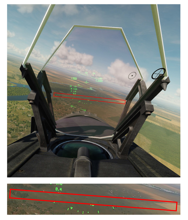 When using Track IR or VR to move your head, there will be a "non-transparent bar" that block some important HUD indications or texts. Especially when your view angle in cockpit is high. Sometimes, for example during landing, even the FPV can be blocked at a specific angle.