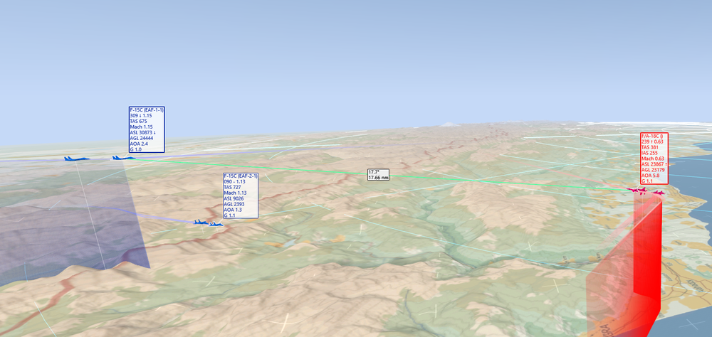 In this case The radar TDC displays a detection lower limit of 17(k) at 4bar, but at the same time, a group (2 ships) with an altitude of 9K feet are also detected by the radar. Is the coverage of radar too large? FA18 Radar pitch angle Error.trk