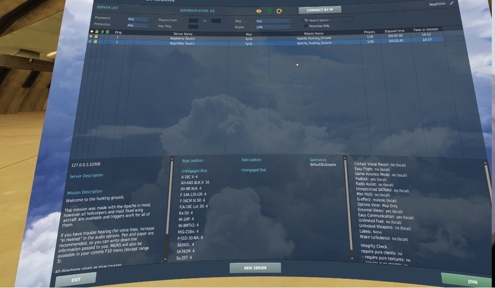 Hey All, I am trying the trick with a dedicated server but when I go into the Server list to join I see 2 of my servers listed but I only have 1 running? I am trying to figure out if this is normal or do I have 2 servers running somehow? and if I have 2 servers running I only want 1 to run as it is confusing seeing 2 servers.. I also would like to know If I am going to host a server in Multiplay could I use this trick to run the dedicated server and join the game on the same PC or do I need to have a seperate PC to run the server on? here are a couple of screenshots: dcs.log dcs.log