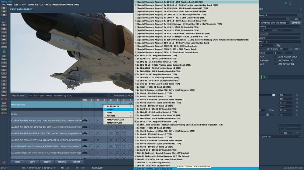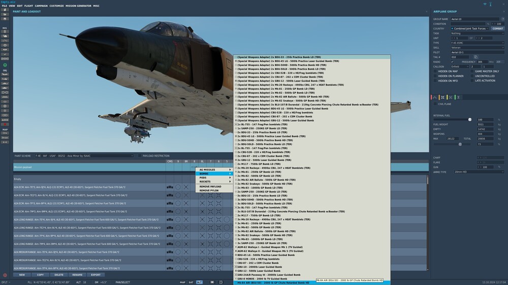Scott, I forgot to mention/report (maybe others already did) but approx half a year ago when a weapon (bombs) update/addon came out for the F-4E Phantom and we got a long (actually a tall) list on the screen in the PAINT AND LOADOUT window, (pylon 2 & 8 with bombs) so we cannot see the full bomb list when using 1920*1080 resolution (I like it better when my GFX-card-fans are noiseless therefore the lower res.). - Mudhen anf Viper bombs list (bomb-column-list) close to "full" also - well, it's a bug and a wish same time: we need up/down arrows on the top/bottom of weapon column-lists or a slider to display a larger selection of bombs GBU-12, GBU-24, GBU-8, MK-84 AIR is missing/not visible when 1920*1080 res is active. (@ the bottom of the column) 1920*1080 2560*1440