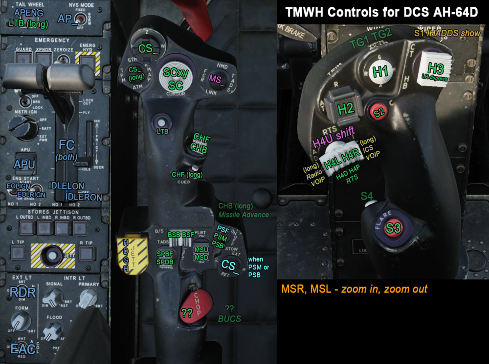 I have a 128 button Vjoy profile that includes an xbox controller for TEDAC. Cutely the button numbers are sequential alphabetically through the control list. Device 1 is 8 axes, 64 buttons, 1 POV (continuous) Device 2 is 8 axes, 128 buttons, 1 POV (continuous) Device 3 is 0 axes, 8 buttons, 0 POV <-- Just used to do long/short commands with the POV hat as a loopback input AH-64 v1 64 TEDAC v2 128 Cyclic Collective Panel Other.xml -