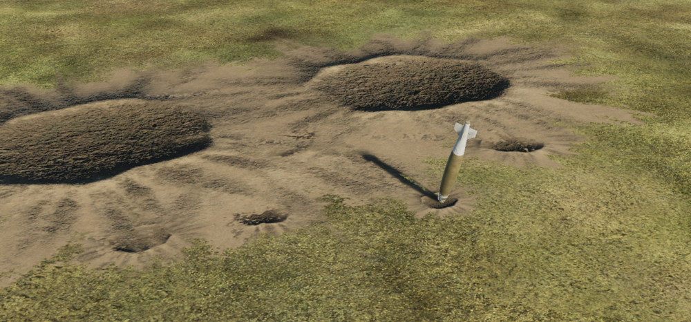 It would help to see your SMS page to verify the alignment quality of the JDAM. You want an "A01" alignment quality figure. And yes, CZ but the fact that TGP is slaved directly at the target suggests that's not an issue. Also he did lase during the mark point so that's not an issue. You can simply compare the TGP displayed coordinates (or the mark DED page) against the target actual coordinates. Nor would a targeting error cause a large dispersion. But when testing it's best to eliminate as many extraneous variables as possible. Why include TGP, marks, etc. when testing if a weapon is accurate or not? I just put a waypoint at the target and delivered bombs against the waypoint. No extra sensors, no marks, no cold start, no alignments. From 26,000' M0.9 heart of the LAR delivered 4x GBU-38 rapid fire against the Senaki TACAN antenna. Bomb craters (small) are the impact locations. The last bomb has yet to explode for scale. The TACAN antenna disappeared between the 2nd and 3rd explosions but it was in the middle of the craters shown above. This suggests that under certain conditions 4x JDAM can have very small dispersion, about 3m on average and good accuracy. Why the other bombs were at a higher dispersion and/or lower accuracy would have to be discovered by changing one variable at a time to isolate the cause. -
