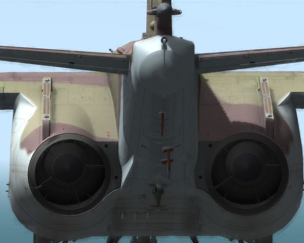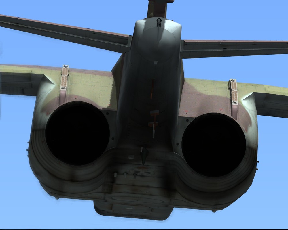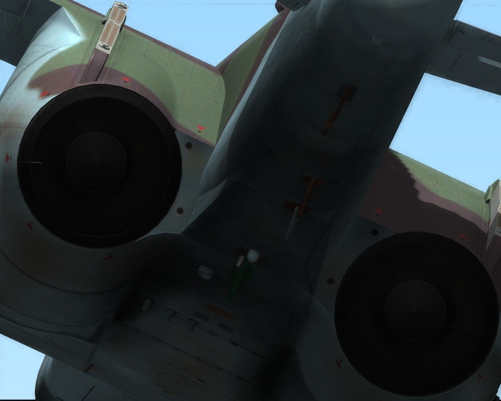Изменения коснулись не стандартных частей текстур по отношению к скинам - я затемнил двигатели, и воздухозаборники изнутри (с намеком на то, что там кагбе темно). Еще я сделал резину шасси более темной. -