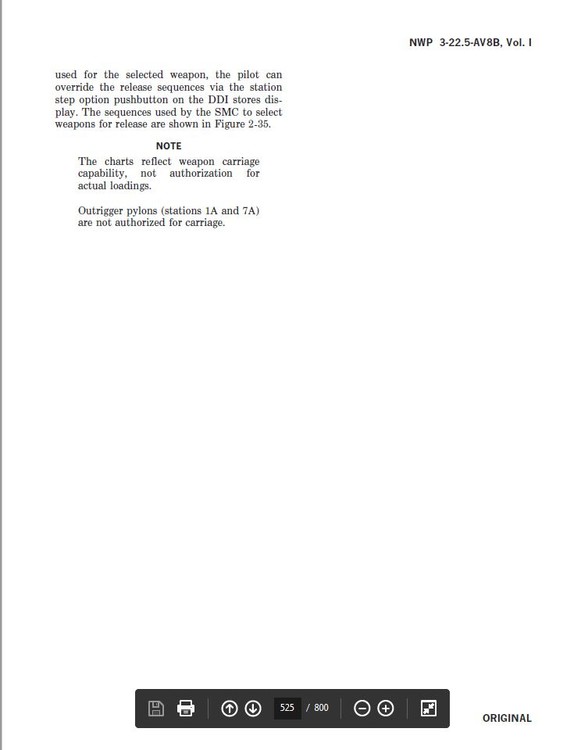 Hi, I think it would be a nice idea to add the outrigger pylons to the loadout options. I know they're only used on British Harrier II's, in fact they were also available for USMC AV8B's but not authorized for carriage (a bit like the DDM pylons on the Mirage 2000C) Just let the mission maker decide if he wants to stick to real life loadouts or if he wants to carry up to 6 AIM9's (or 6 Sidearms :thumbup: ) That could open some interesting possibilities for "swing-role" missions or SEAD suppression :joystick: PS : I've attached the following extracts from the AV8B Tactical manual to prove my point