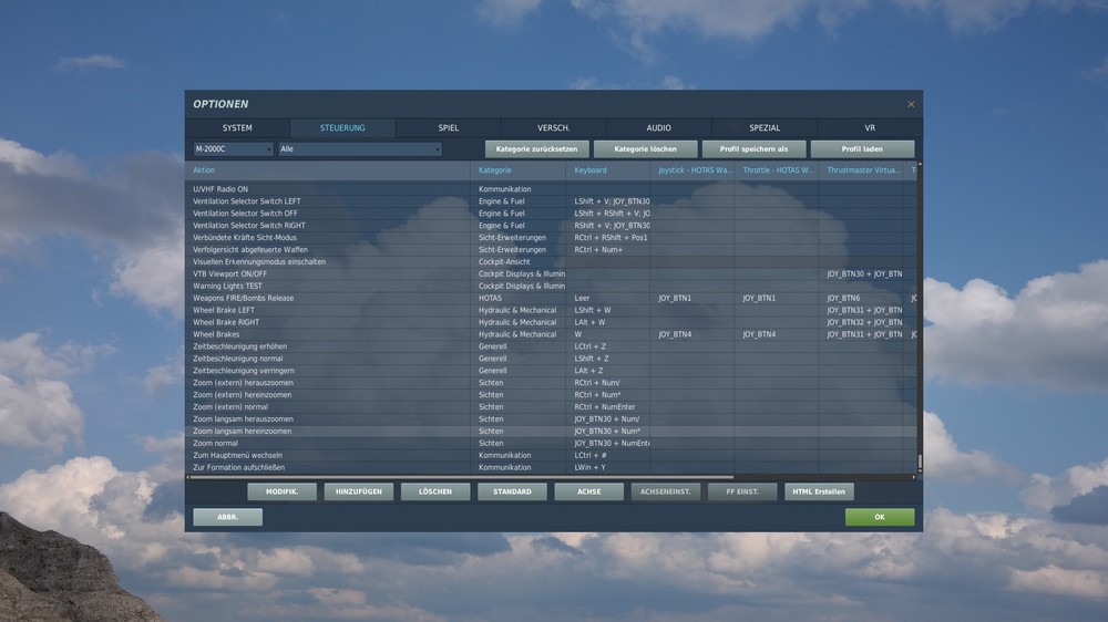 Das das der Joystick jetz zum teil Tasturbebefehle ausgibt ist richtig. Schau notfalls ob auf der Tastatur die Einrastfunktion, Scrolllock oder sonst was an ist. Die .Diff kommen jeweils eine bei Tastatur, combined hotas Warthog und bei Achsen unter combined hotas Warthog rein.
