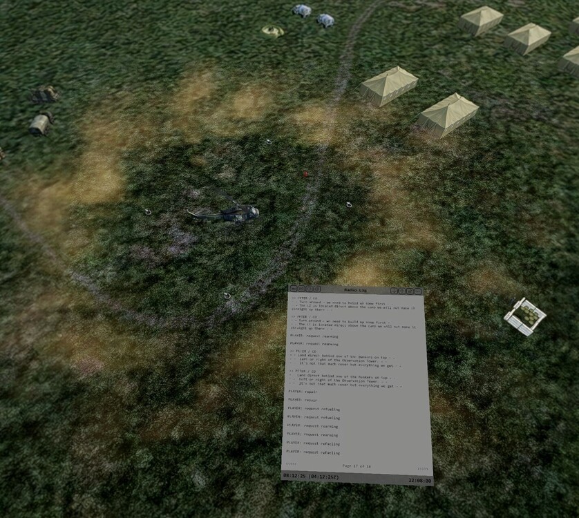 Ok, tried it again, and its just not working for me. No reply from Ground crew, when landed at Sierra Oscar LZ. Also, took the first Stinger team to the observation tower, and landed behind the bunker, but then nothing, they didn't get out. After that, the mission seemed to kind of die. No more radio transmissions. Low res VR screenshot from the LZ attached.