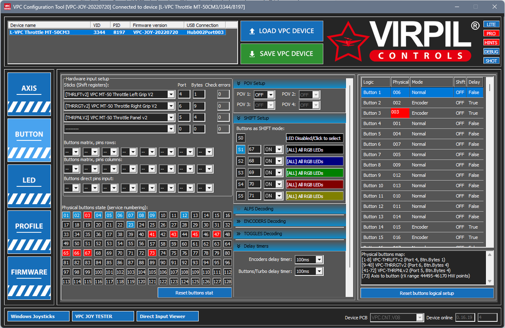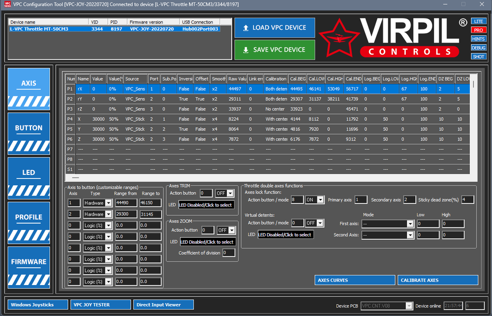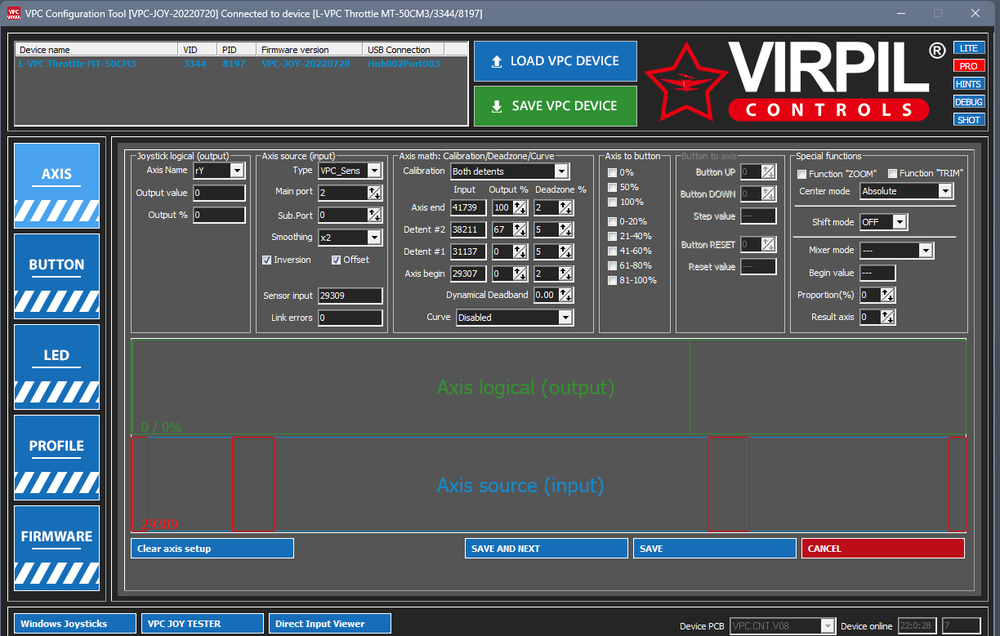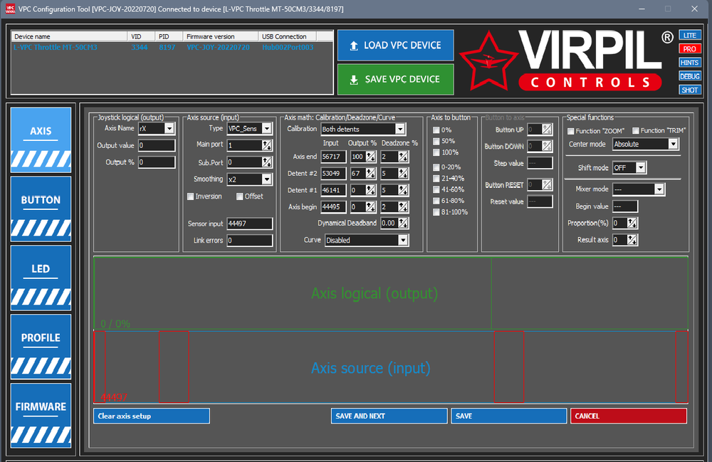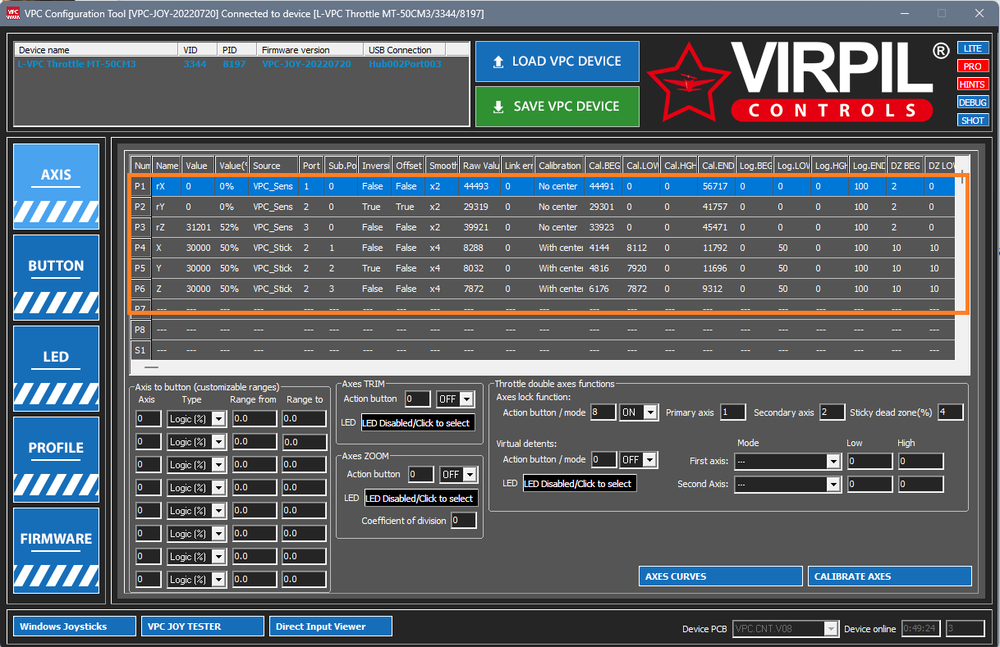 I am now trying to configure the CM3 Throttle for the DCS F/A-18C. I am using the warthog detents, and now trying to figure out the software. @imacken I found a post where you outlined the process of configuring the Virpil software for idle/cutoff and afterburner. It looks like your post is about a year old. Do you have an updated guide? I was reading the first few steps (1C, 1D) and can't even find these settings in the software so I am not making much progress. Virpil's manuals really don't seem to be very helpful as far as using the software. In the screenshot attached, under the Source heading there are 6 items listed. Do I need to calibrate the VPC_Sens or VPC_Stick ? Edit: Looks like rX is Left Throttle, rY is Right Throttle, and rZ is the lever on the right side of the Throttle. I am guessing that I need to calibrate rX and rY which are VPC_Sens, rather than the X and Y VPC_Stick.