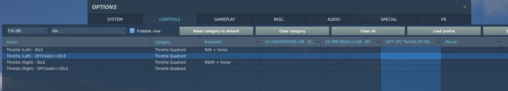 Here are the screens you requested. Thanks for the help. In the configuration shown below, the afterburner in the F18 works great, and the only thing I did was enter Detent 2 as 67%. However, I can't get the idle function to work at all.