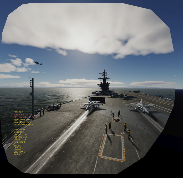 thanks, I just wanted to know, how bad is my "stone age CPU" (intel i7 7820X 4.7GHz & 32GB RAM) Since this spring, I am hesitating whether wait another "two weeks" for multicore or go to CPU upgrade. the screenshot is with the same DCS settings as yours, OXR 100%, toolkit - all improvements off; I am pretty CPU bound here