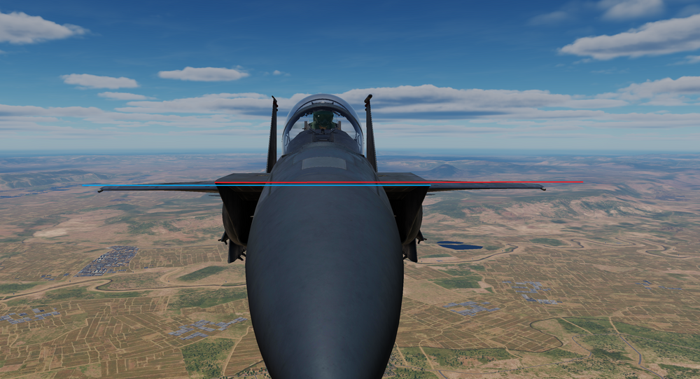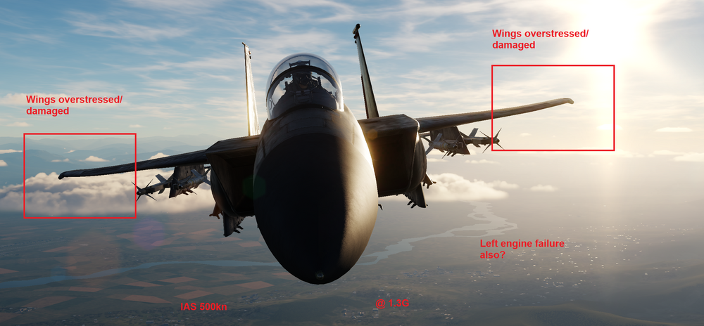 I watched your track and there were afew instances of rapid over G from what I've found the rocking motion is from over G damage to the airframe the F15E isn't fly by wire and won't restrict AOA thus G loading is instant if you pull back to fast on the stick at high speeds. In real life aerodynamic forces are acting upon the control surfaces making quick jolts to the control stick very hard to do but with a simulator Hotas there is no such limitation and worse no flight computer between the controls and flight surfaces to correct for the error like in the F-16 or F/A-18. so ultimately overly rapid inputs can cause structural damage to the aircraft it causes simulated damage to the wingtips of the F15E I think that's why after a few abrupt over G maneuvers the airframe starts to rock slowly side to side in level flight they have also simulated the damage model for this as seen in the pictures below. Otherwise, I do see what you mean about the rudders oscillating like crazy I'm not sure as to why this specific thing is happening. I may not be 100% correct here but it may have something to do with the damaged wing and the Aileron/Rudder Interconnect (ARI) and the Yaw Channel CAS. the F15 series has a system in place to assist pilots who forget or hesitate to use rudder inputs during maneuvers I'm not 100% sure but I think after the damage the YAW CAS was in some way chasing its own tail trying to compensate for the wing dip from the damaged wings and the yaw it was producing but it was overcompensating and thus causing the oscillation if that makes sense. from what I've read online is that the F-15 has strong positive dihedral effect, which produces strong roll in the direction of yaw at all flight conditions at higher speed the wingtip dip from side to side would be exacerbated take into account the left engine failure adding even more yaw and it's likely the Aileron/Rudder Interconnect (ARI) was freaking out the Yaw CAS just a theory would be awesome to see if this was the actual issue. Edit: out of interest I replayed the track took control of the F15 after the oscillation it looks like the left engines feed tank ran dry of fuel explaining why it stopped, I reduced both throttles to idle and used the YAW CAS switch just above the throttle to reset it a few times it worked, and the rudder oscillation stopped completely it looks like it may have been possibly a few factors leading to the CAS freaking or maybe a series of factors like wing overstress/damage and engine failure thus asymmetric thrust also the added possibility of hitting the mirages wake side on too but overall looks like the CAS was going crazy hahaha. -