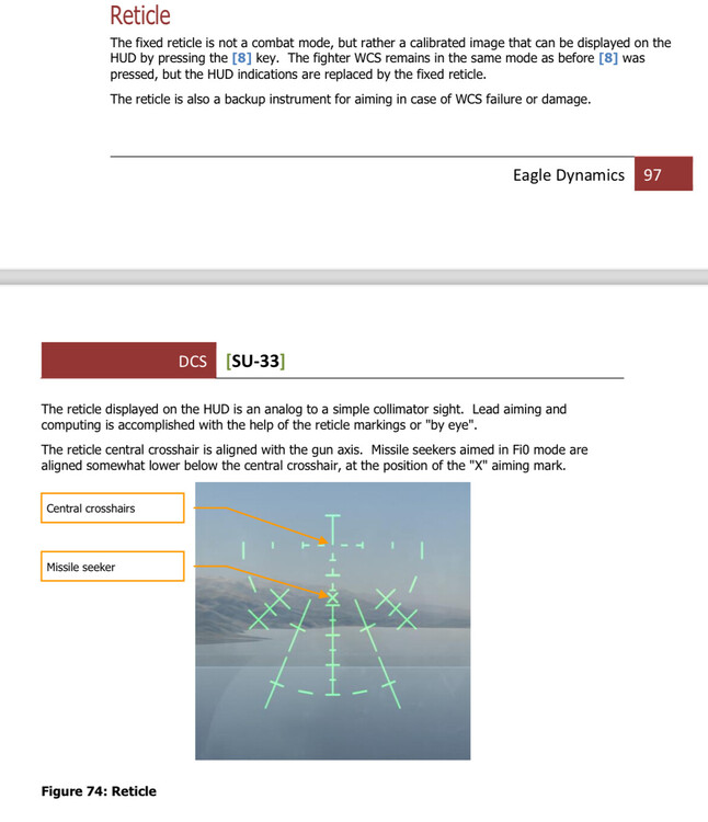 I was testing things recently and found some stuff at odds with the manual for the DCS Su-33. According to manual for both, in fixed net, the “x” should be where to aim missiles for Fi0 mode. However this “x” is 2 degrees above the actual center of the missile lock zone in Fi0. In addition, DCS MiG-29 and Su-27, which share many elements including Fi0 mode and fixed net alignment, have the missile axis/Fi0 lock zone centered on the fixed net “x,” and the gun aiming at boresight 2 degrees above at the center of the fixed net However in DCS Su-33, the fixed net is 2 degrees higher, with fixed net “x” not only 2 degrees above the Fi0 missile lock center, but the gun and fixed net boresight is 4 degrees above this missile lock zone. It seems the HUD artificial horizon is two degrees lowered in Su-33, and the gun shoots much higher in the HUD symbology. The missile axis in both DCS Su-27 and Su-33 is 2 degrees below the boresight/AOA=0 line, but only in Su-33 is the gun and boresight of the fixed net 2 degree above true aircraft reference line (AOA = 0). This can only be explained by the HUD Symbology not only being tilted either 2 degrees down or 2 degrees high depending on the mode, but the gun being tilted 2 degrees higher then DCS Su-27. As far as the manual and everything I have read about Su-33 the structure of the gun mounting should not be different (as well as looking visually identical), and the fixed net should have the “x” in the center of the Fi0 missile lock zone. Either the gun really is tilted 2 degrees up and fixed net with it, or there is some error with how these are lined up. I understand if this is intentional and not communicated in the manual, but I wanted to make sure it wasn’t a bug or an error and if there is any reason for it to be this way Here is a track, thank you missile-gun-axis-test.trk Here is also 3 pictures of DCS MiG-29, Su-27, and Su-33 at low altitude and high speed over the ocean, with less then 1 degree AOA and level flight, while firing the gun with fixed net. You can easily see how the Su-33 fixed net is tilted 2 degrees higher along with the gun bullet trajectory, they are two big so here is a google drive link https://drive.google.com/drive/folders/10eVF7tHxP3hu8HEVrB05oqpiwoFLaMlu