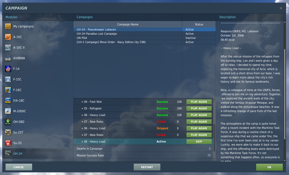 Finished. Really enjoyed it. The only mission I did once was the last one. So much to take in I enjoyed doing all the rest more than once. Highly recomented if your new to the A10c and want to be talked/shown through everything. 9/10 from me. -