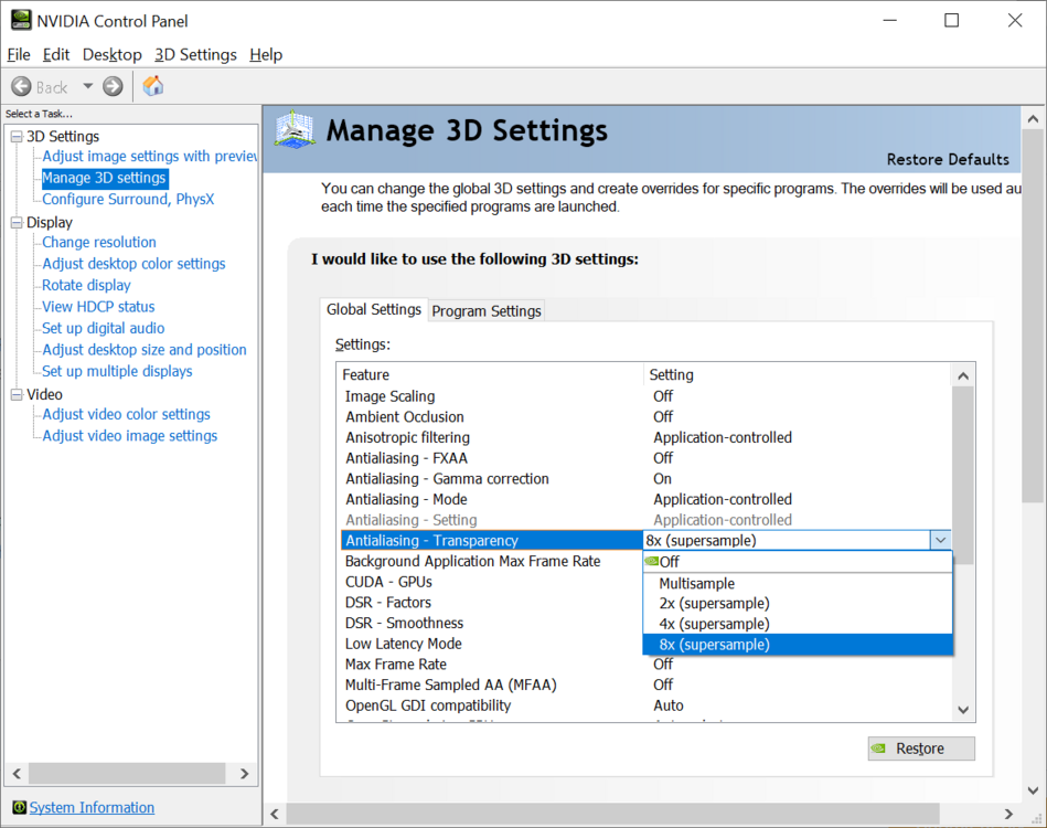 MSAA, by definition, doesn't supersample the whole picture (that's what SSAA does). Just the edges of objects, where "jaggies" are expected to happen. Also note there's this setting in the NVidia Control Panel (and I assume there's an AMD equivalent). It will clean up edges of transparent textures, like the trees, and I see virtually no performance hit from using it. (Which I have been for years. This together with MSAA are just as good as SSAA, but much faster.)