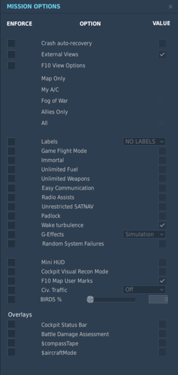 1. No, that's incorrect. Servers (through their own settings as well as the settings in the mission file the server is serving) can restrict external views, map modes, "cheats" like padlock, easy flight and the ability to turn off the cockpit rendering, and lots more. If you add an option to have transparent canopies they'll absolutely need to add the ability to restrict/enforce that in the Mission editor as well. (This also means it needs to be a "live" option that can change on the fly, where the existing lua edit isn't one, it's loaded at start-time and stays stuck how it is for your entire session, so don't assume that work is done and tested for all planes. Do you ever join a mission and are told, "sorry, you need to change your options and restart the sim"? No, because those options are enforced in real time when you join the mission/server. So, I wouldn't necessarily assume it's as easy as adding a couple of checkboxes to the settings and ME interfaces.) 2. Only after they had added three new settings and made every single aircraft obey those new settings. (And, again, you could be done with this now if you'd just make that simple lua edit.) 3.Who can see cleanly through their glass and why? Are you suggesting we see different things? We're not supposed to. (Excepting some obvious differences re: VR and the number of eyes we have. And as I've already pointed out, the ability for VR users to put their PoV outside the canopy glass really needs to be fixed because that is an unfair exploit as well). 4. ...and also be added to the restriction/enforcement list in the ME and server interfaces. But, yes, maybe you're right that aircraft already know how to implement that lua-option, but again, is it a live option? Probably not! All I'm suggesting is that a better place for their development effort to go is into getting the new reflections finished for all aircraft, and doing some clean-up work on the few aircraft where the effect is over-done or wrong looking. And add reflections on the HUD glass too, as it should obviously have them. (And they won't be much as the HUD glass is angled down towards the black dash. Mostly we should only see the light from the projector lens reflected in them, as is already "painted on" in many aircraft, but that looks bad when all the other glass reflections now move with your PoV except that one.)