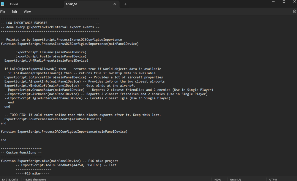Buddy found a work around. Go to line 713 and comment out --ExportScript.GroundRadar(mainPanelDevice) -- Reports 2 closest friendlies and 2 enemies (Use in Single Player) --ExportScript.AirRadar(mainPanelDevice) -- Reports 2 closest friendlies and 2 enemies (Use in Single Player) --ExportScript.IglaHunter(mainPanelDevice) -- Locates closest Igla (Use in Single Player) end end