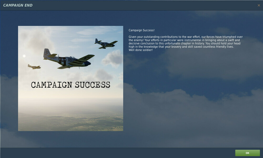 Love this campaign..BUT boy its a lot of time in the seat till you get to Mission 13 and 14.... But I thought it was well done, good missions...really gives you an idea of the flying time and the crap they ran into back then. Ground targets are, as always, hard to see sometimes...but that is the challenge....I died 4 times...2 because wingmen are stupid and run into you while trying to land and 1 because I ran out of gas on the downwind... Well worth it to buy if you want some good missions, voiceovers etc. A+++