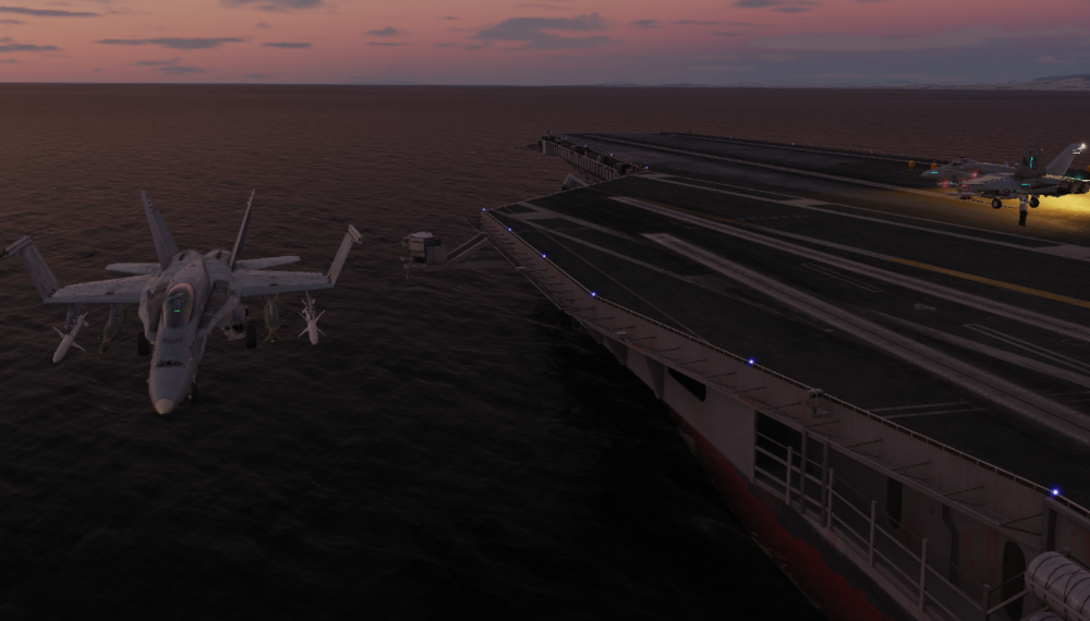 Didn't get a track because it was hours in to the mission, but AI hornet landed on supercarrier and taxied over water. Didn't fall, it just hovered over the water and taxied back on to the deck. Couldn't reproduce yet, will update if i get to reliably happen. -