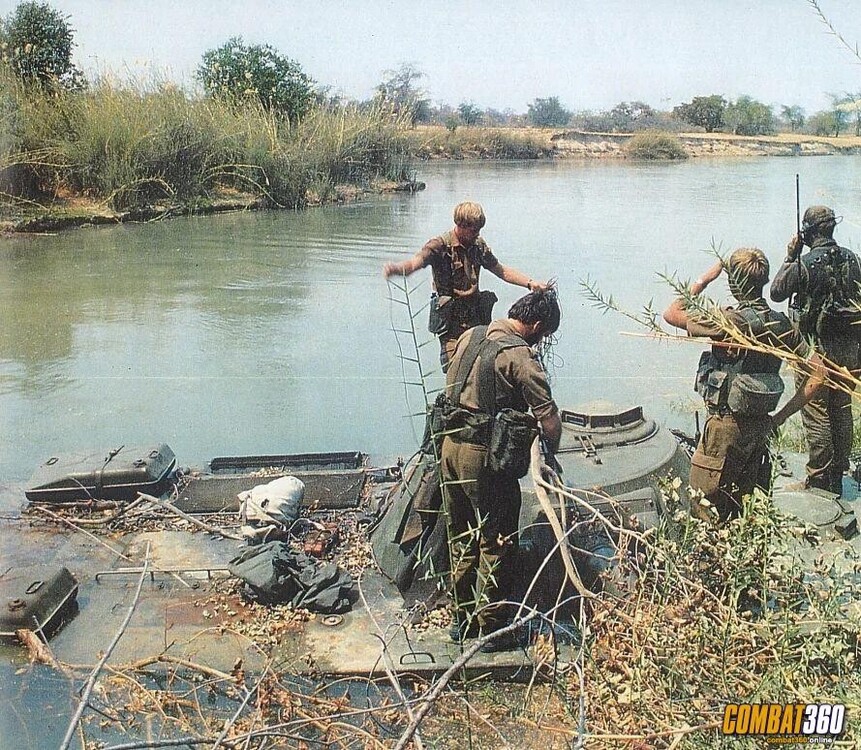 South African #Recce operators on the Quito river at a place called Mapupa, trying to recover an Angolan PT-76 during Operation Protea in 1981. They eventually destroyed it Victorino and Koos Stadler from 5 Recce Regiment -