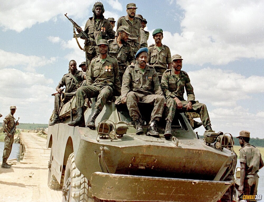 SADF Olifant tanks lined up before the start of Operation Hooper in 1988 Angolan SA-13 Strela-10 system in the bush FAPLA troops hitching a ride on a soviet-built BRDM SADF clearing SWAPO or FAPLA bunkers in the Border War circa 1980’s -