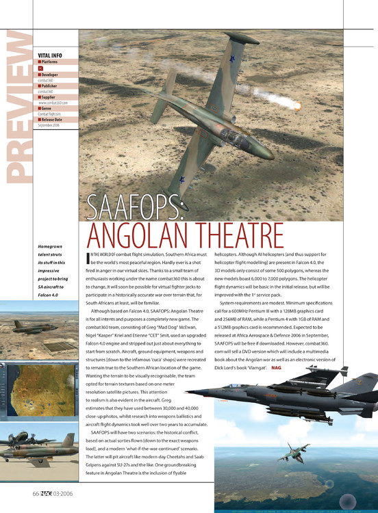 Back in 2005-2007 (that is 17 years ago... ouch) we were developing a theatre for Falcon 4, that covered the war that lasted for over 25 years between the Cuban led FAPA-DAA and the SAAF... We introduced new flyable aircraft (many a firsts in Falcon) e.g.