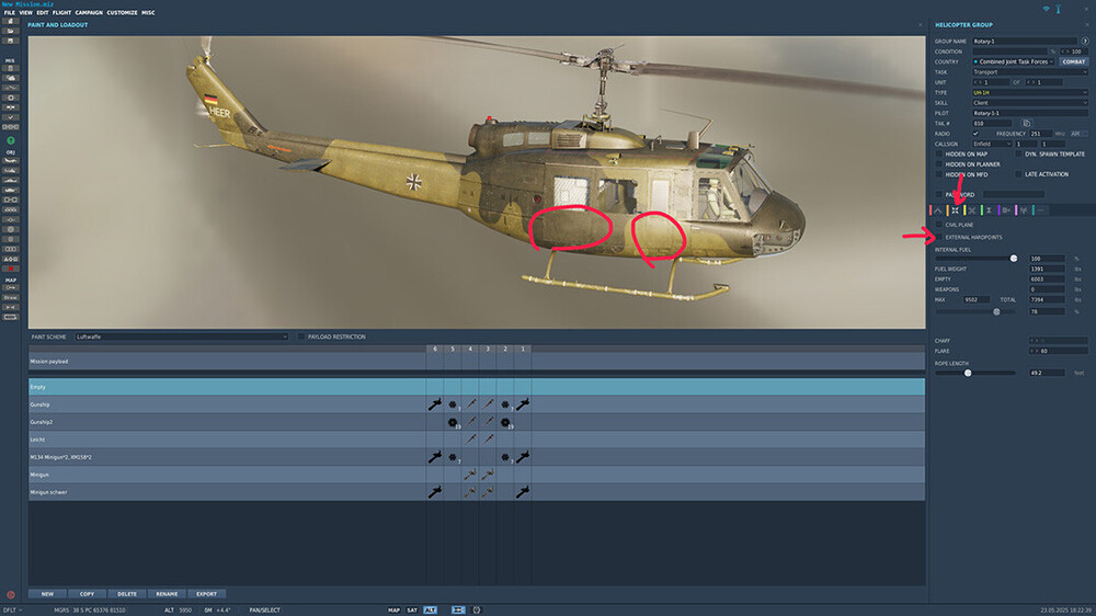 Wenn man z. B. am Flughafen X keine GBU-12 mehr hat, kann man die am Flughafen Y einladen und dort wieder ausladen. Das muss aber im Missionseditor aktiviert sein. Standartmäßig ist alles unendlich vorhanden. Ebenso kann man auch mit Triggern und einer Befehlszeile das Lager von Flughäfen, FARPS und Flugzeugträgern direkt beeinflussen. Auf unserem Server habe ich das schon in Missionen integriert und eine "Cold War/ Modern" Umschaltung umgesetzt. Da werden dann Waffen mit GPS, AIM-9X, AIM-120 AMRAAM, CBU-99 usw. gesperrt, bzw. wieder entsperrt. Gut, die dynamische Kampagne ist schon lange in Arbeit und freue mich auch am meisten darauf, da das schon einen recht ambitionierten Eindruck macht. https://www.digitalcombatsimulator.com/de/news/2024-07-26/ Natürlich gibt es Vieles, was lange angekündigt wurde und man sehnlichst erwartet. Allerdings ist für mich persönlich DCS in dem jetzigen Zustand auch schon eine Simulation die ihresgleichen sucht.