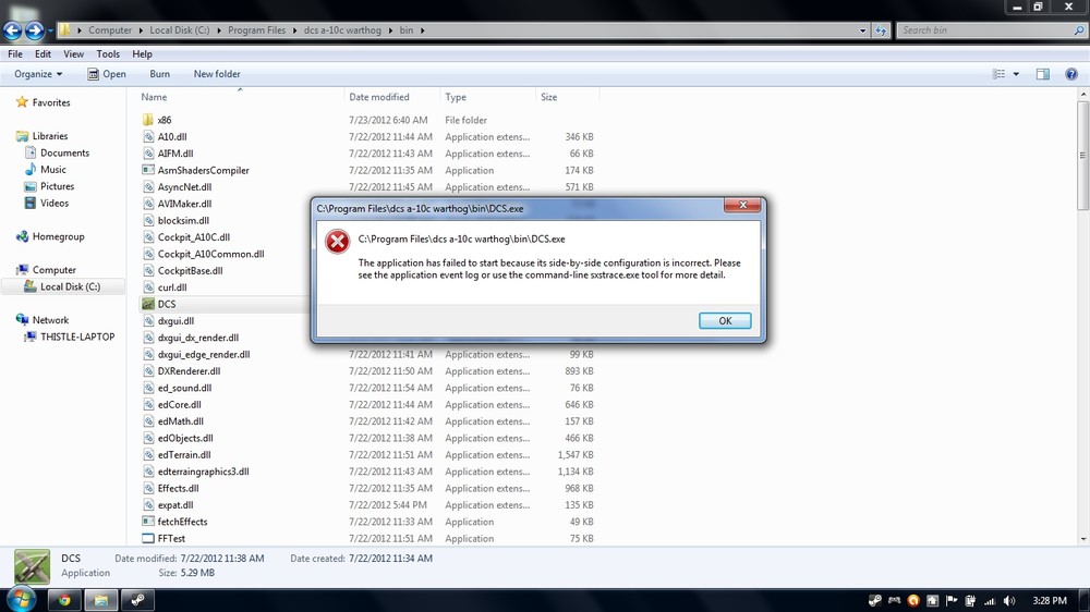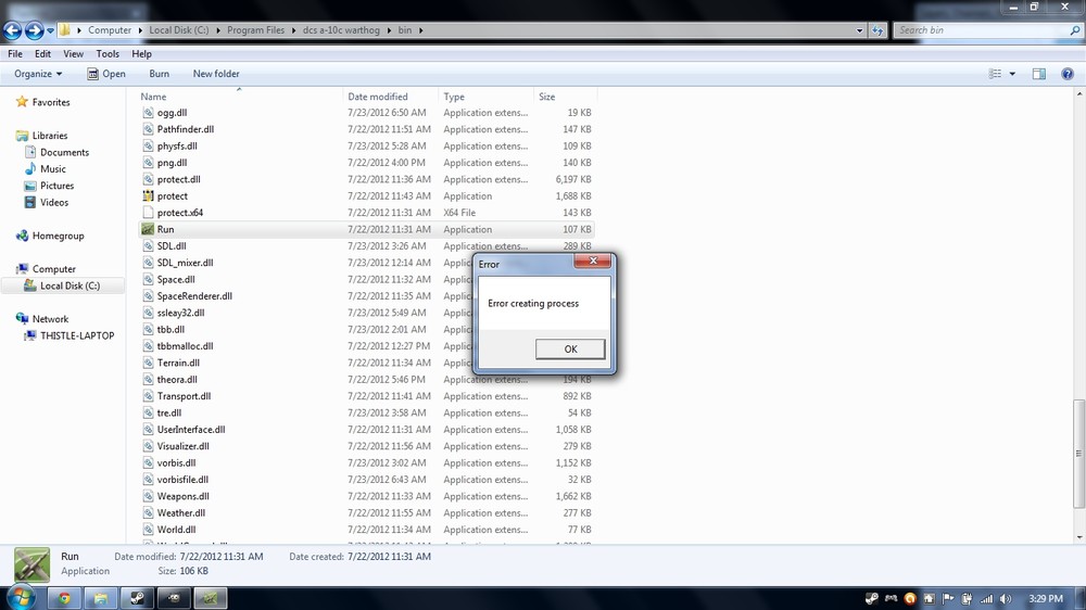 DCS A10C Fresh Install From STEAM: Error Creating Process : Please Help The Error just says: Error Creating Process Any IDEAS? Anyone? Thanks for any help in advance. Here is the original thread on Steam Forums. http://forums.steampowered.com/forums/showthread.php?p=31907476#post31907476 DxDiagJared.txt