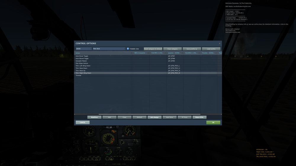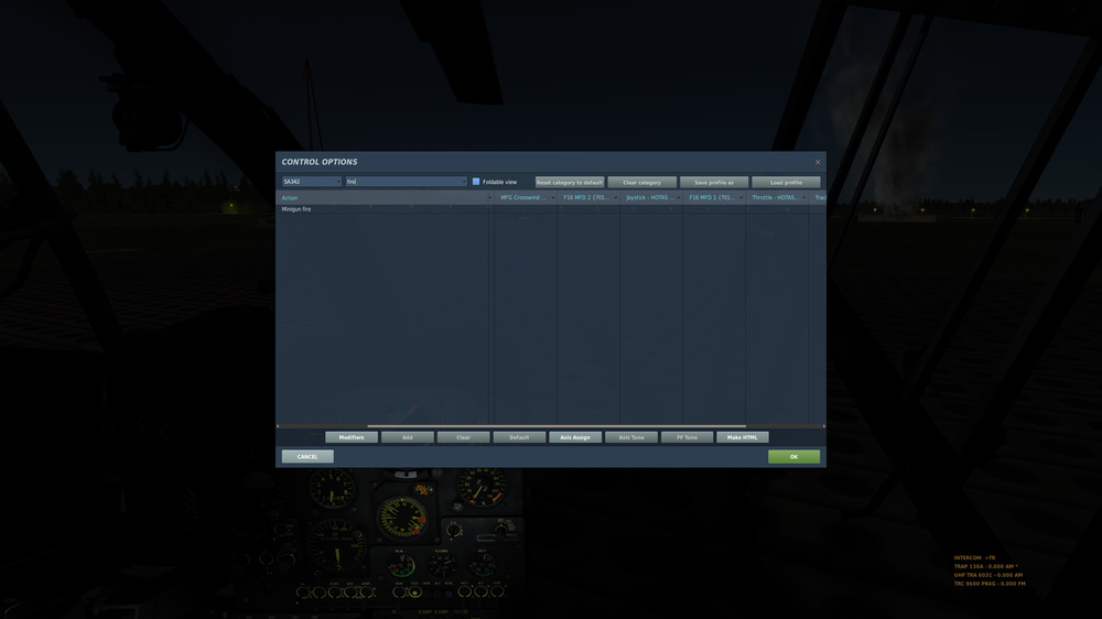 In the LUA file the entry for button 1 to Fire Gun or Rocket is present under Pilot Stick, but does not show up in game and can't be bound.  Button 1 is currently assigned to Fire Minigun.