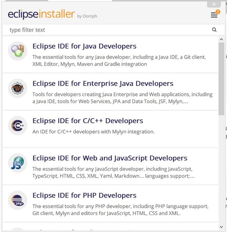 Which Eclipse Version Do I Need? Just now getting started and was trying to download Eclipse. I made the donation and was able to obtain the .exe download, BUT when I opened it, it had several Eclipse options (see attached pic) and I have no idea which one to choose. Or maybe I'm just in the wrong place? A little help would be appreciated!