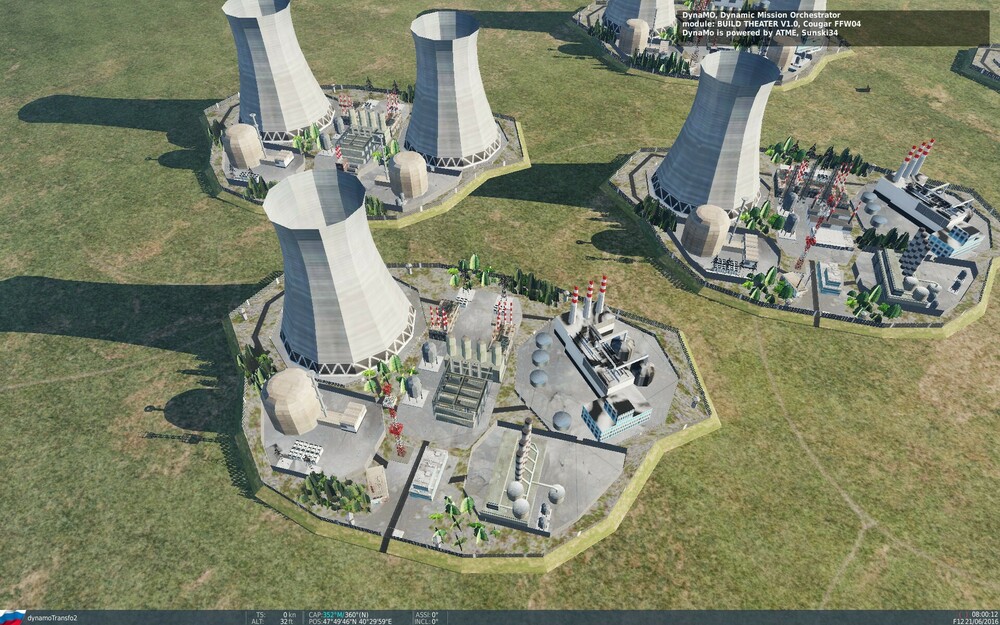 Hi everyone, Time for a little update. As the Theater builder is now quite robust I hve started to build an exemple/tutorial in the Caucase map and I will show you soon with new screenshoot or video. In the meantime I show you a new exemple of the platform diversity that you can achieve in particular with the link dependancy in the present case on a nuclear plant. I mean that you can superimpose many simObjects on the generic platform (the one on the top) but real platforms will cope this that according to your preferences and build real platforms on the theater (where you specified, here I put them nearby to swow the differences) with no overlapping objects and great diversity. I think it's time now to deal with ground forces that will defend these startegic sites still according to your preferences and of course random. I will keep you inform, Happy flying with DCS -