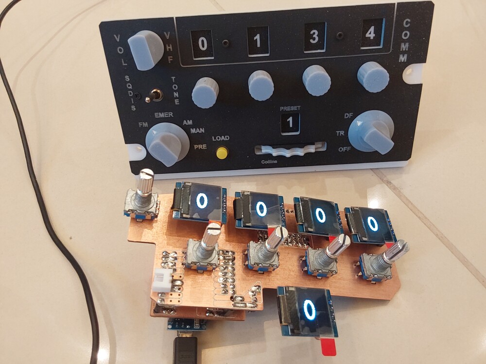 Thanks Here's a pic of the vhf panel with the multiplexed OLED array on its PCB below, with a test sketch (in this case the TISL sketc) to test the hardware. Each OLED will display the particular frequency, or at least that's the intention! -