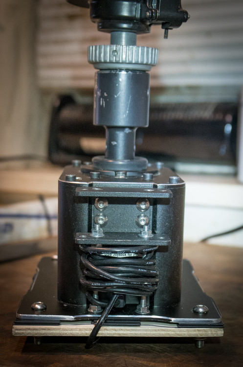 Mk I, with L-brackets, and Mk II, with a hacked up WarBRD desk mount. Unfortunately adapting my Mk II design to a Virpil accessory base plate won't be the easiest affair, since there is no metal directly under the u-bracket that you could drop a bolt straight down to. This unforgiveable oversight will, of course, be fixed in the Mongoose-T50CM2 base plate which will, of course, be announced the day after your previous Virpil order ships. -